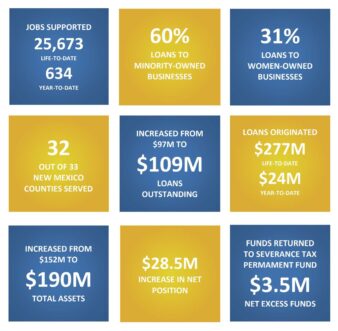 NMSBIC’s greatest success has been its support of nonprofit lenders, which have played an important lending role as traditional banks have reduced lending to small businesses. NMSBIC funds committed to nonprofit lending organizations have resulted in $277 million in more than 7,300 loans to small businesses—many of which would not qualify for traditional loans—and contributed greatly to job creation and retention. Furthermore, Loan Program earned interest has exceeded loan losses, resulting in a net financial benefit to the NMSBIC in addition to the stimulative economic impact generated by the program.